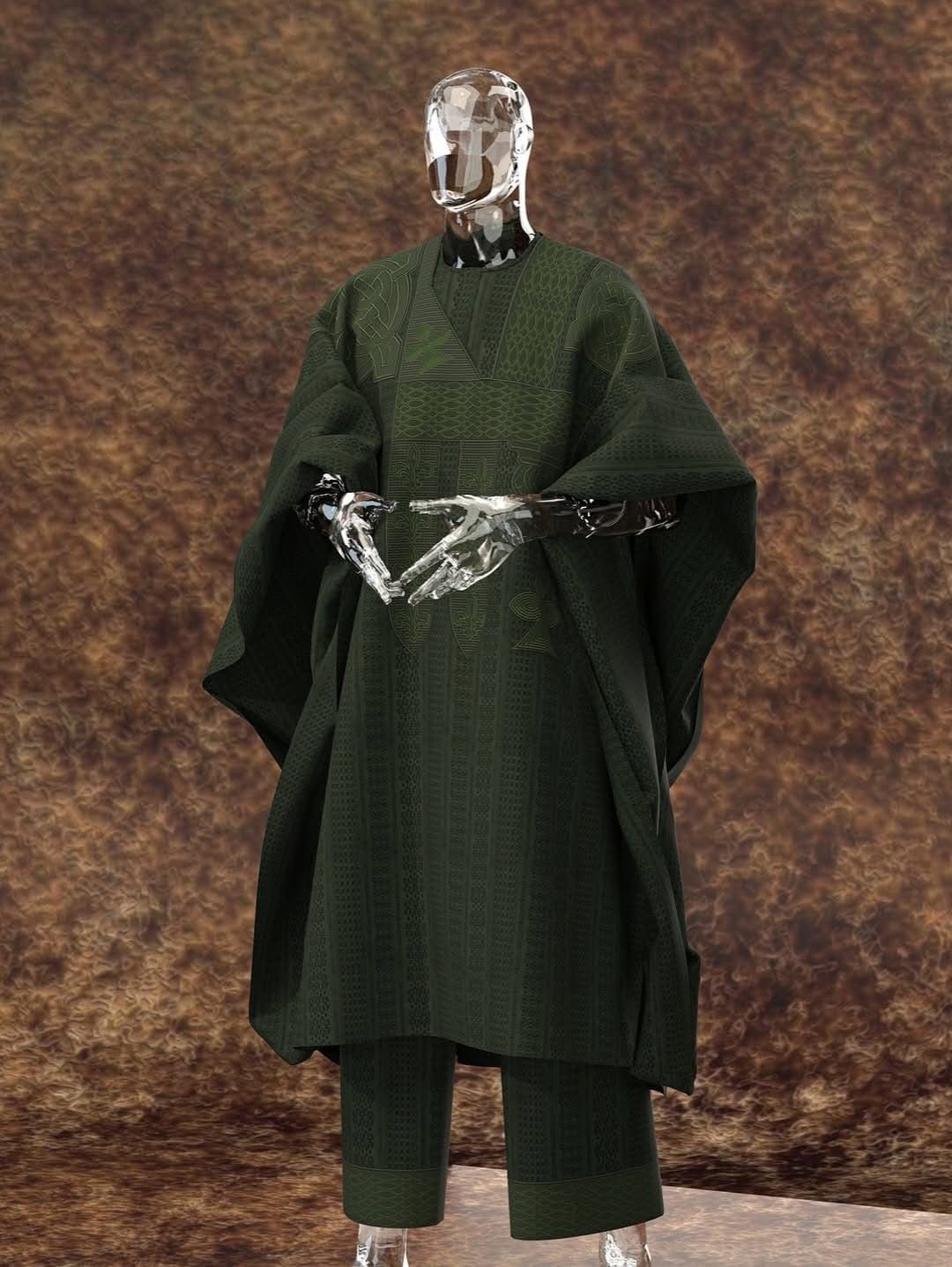 Ola Royale is a white flowing agbada designed to embody majesty and purity. Crafted with attention to detail, it offers an elegant drape that enhances presence and confidence. Perfect for formal events or culturally significant occasions, this agbada blends traditional craftsmanship with a refined aesthetic, allowing you to make a distinguished statement.