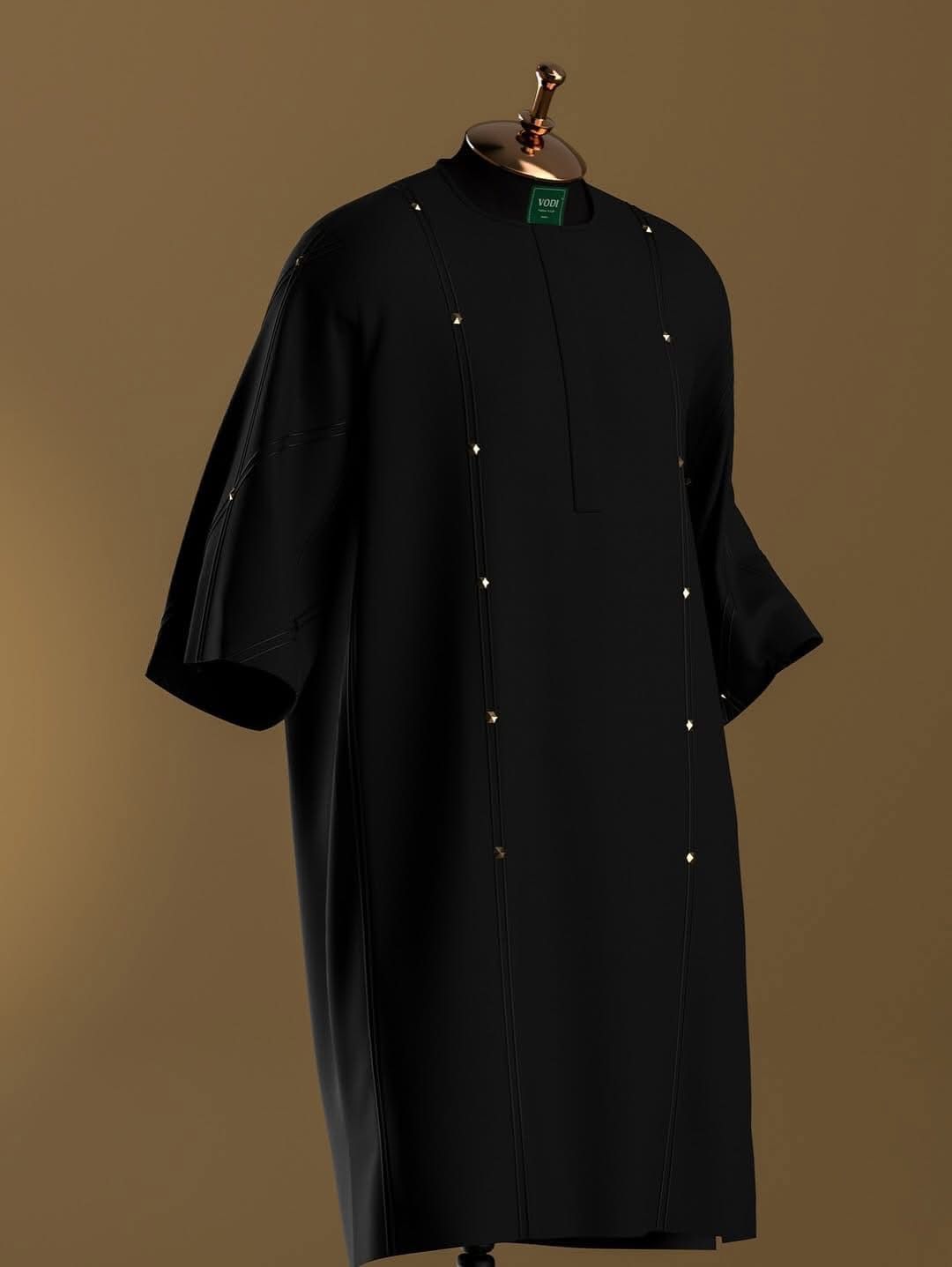 The Otu Mystère kaftan combines deep black and midnight blue hues to create an elegant garment with a mysterious allure. Its flowing silhouette offers both comfort and sophistication, perfect for those who appreciate understated luxury. Ideal for evening wear or special occasions, this kaftan enhances your presence with its subtle yet captivating color palette.